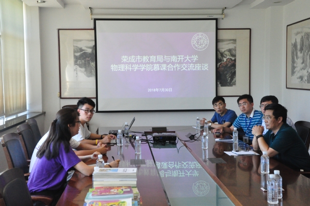 结合前期进行的对荣成科普情况的调研结果,为帮助荣成当地小学生和中学生进行科普教育,实践队师生代表与荣成市教育局负责人进行了关于合作搭建慕课平台的交流座谈,希望随着“南开大学社会实践基地”的建成,双方可以丰富合作方式,采取教学科研、物理竞赛辅导、就业实习、项目调研等多种形式,达到切实帮助荣成学子发展成才的结果。同时,实践队还在荣成市教育局进行了达因黄海希望小学“南开书屋”扩捐仪式,现场捐赠书籍共计123本,共计捐赠书籍530本。