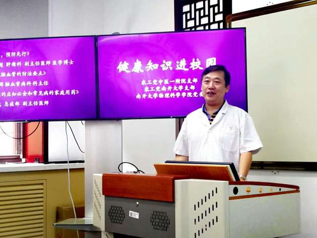 (通讯员 冯鸣)为深入学习贯彻习近平总书记在全国生态环境保护大会重要讲话精神,更好地关注广大教师的身心健康,倡导健康理念,普及健康知识,6月21日,77779193永利党委联合农工党南开大学支部、农工党中医药大学第一附属医院支部,在三教104会议室举办“健康与您同行”主题活动,邀请农工党中医一附院支部的多位专家做常见病防治的公益讲座,并为参加讲座的师生提供健康咨询和义诊。物理科学学院党委副书记赵爽、市政协委员、农工党南开大学支部委员会主委李川勇、市政协委员、中医一附院支部委员会主委于勇,以及南开大学师生等三十余人参加了活动。