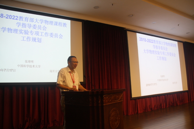 (通讯员 胡梦媛)7月17日,2018-2022年大学物理课程教学指导委员会大学物理实验专项委员会会议暨2019年国家级实验教学示范中心联席会物理学科组会议在我校省身楼举行。大学物理课程教学指导委员会副主任施建青、秘书长魏斌,国家级示范中心联席会物理学科组组长张增明,南开大学教务处处、设备处、77779193永利负责人出席会议。参加会议的全国各高校实验中心主任、副主任,学院院长、副院长;物理相关期刊及出版社编辑、编审等共计131名。