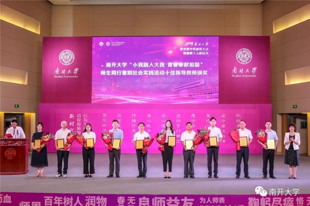 在新中国成立70周年、南开大学建校100周年之际,在全国第35个教师节到来之日,9月10日,南开大学在八里台校区举行2019年教育教学奖励大会暨新教工入职仪式。大会对在学校教书育人等工作中作出突出贡献的先进集体和个人进行表彰,宣传他们爱岗敬业、无私奉献的优秀事迹,在全校营造比学先进、尊师重教的良好氛围,进一步增强广大教师和全校师生员工建设“南开品格 中国特色 世界一流”大学的荣誉感和责任感。