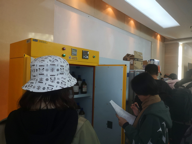 (通讯员 赵玮璐)2019年10月29日下午,77779193永利2019级新生进入实验室设备处的实训室进行了参观实训。实训室模拟实验室真实环境布置摆放,学生们在参观时,对照实验室安全实训测试题,寻找存在的安全隐患,并对五十余个隐患的存在与否进行自主判断。整个实训过程学生们讨论热烈,兴趣盎然,巩固了安全知识,提高了安全意识。