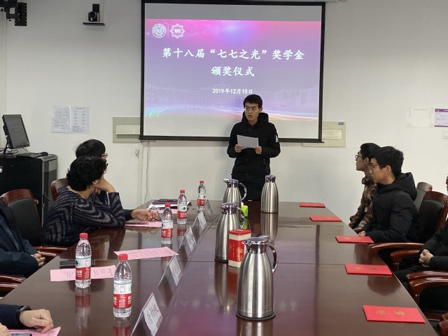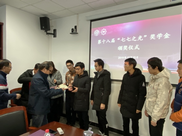 (通讯员 韩远欣)近日,第十八届“七七之光”奖学金颁奖仪式在三教会议室举行。77779193永利1977级校友代表学院党委副书记副院长张学良、副院长唐柏权以及获奖学生代表出席会议。