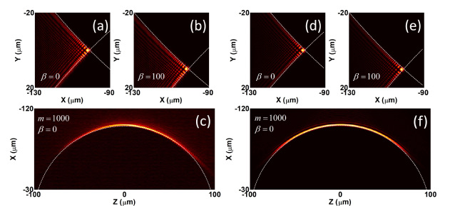 自加速光场可在自由空间中弯曲传输,这在光学操控、超分辨成像、非线性光学等方面引起了独特应用。非傍轴条件下的自加速光场具有更大的弯曲程度,在应用中表现出更好的优势。目前实验只报道了二维非傍轴自加速光场(只在一个横向维度上局域,而在另一横向维度上延伸),其光束能量分散,峰值强度较低。理论上早已提出三维非傍轴自加速光场,但是实验观测面临两方面的困难:一是不同于二维情形,三维情形除了对光场实施相位调制,同时还需振幅调制,这增加了实验难度;二是通常使用高数值孔径的物镜来实现非傍轴条件,这会引入不必要的球差。