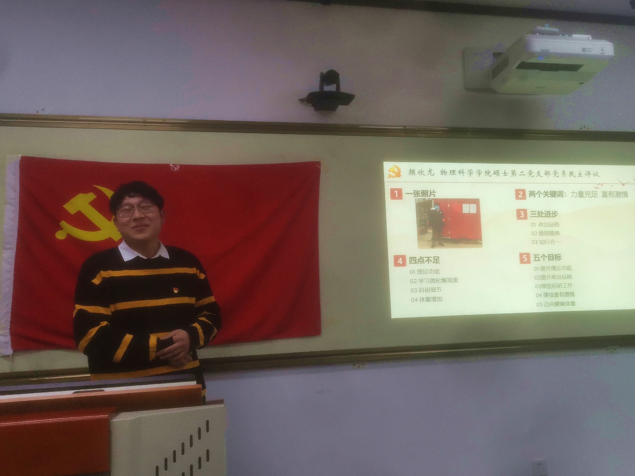 支部党员开展批评和自我批评。全体党员围绕“回顾战疫青春,感悟青年担当”的主题,分别以“一张照片+两个关键词+三处进步+四点不足+五个目标”的形式,分享自己在过去一年的经历感悟,对照合格党员标准、入党誓词和身边先进典型,联系实际进行党性分析,从政治品格、思想认识、理论功底、能力素质、学习工作、生活作风、就业择业等方面讲述自己的成长进步,查找自身的问题和不足,并制定下一学期的成长发展目标。支部党员开展互评和民主测评,充分吸纳意见建议,进行整改承诺。