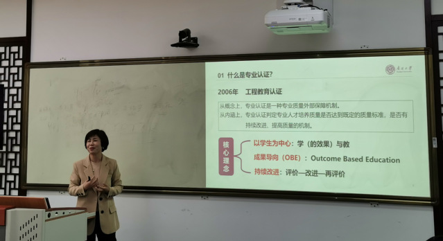 邵庆辉副处长作了题为《本科专业认证之我见(教师篇)》的报告,从外部环境及内部需求详细介绍专业认证的重要性及必要性,剖析专业认证的核心理念及其过程中的侧重点,使学院教师对专业认证有了进一步的理解认识。