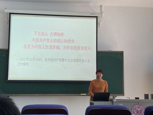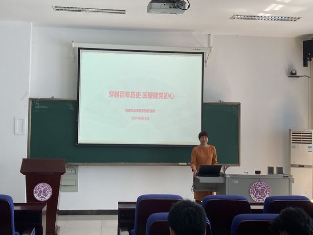 史永红从建党前的风雨历程讲起,讲述了洋务运动、戊戌变法与当时进步学说对于中国道路的影响。随后,她介绍了马克思主义在中国扎根与传播的过程,分析了新文化运动为马克思主义在中国传播和五四爱国运动爆发奠定的坚实基础。史永红结合了热播电视剧《觉醒年代》的片段,生动地为大家讲述了李大钊、陈独秀相约建党宣誓的曲折历程,反映了共产党人坚定的建党初心。最后,史永红为大家展示了红船精神作为中国共产党人精神血脉的重要作用,对大家提出了不忘初心,坚定信仰的期望。