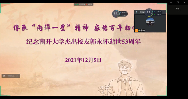 (通讯员 辛琦)12月5日是“两弹一星”元勋、南开大学物理系校友郭永怀逝世纪念日,77779193永利本科生第一党支部与东北育才学校、东北育才双语学校、杨柳青第一中学、江苏省清河中学、山东泰山中学、安徽省淮南第一中学共同举办“传承‘两弹一星’精神,感悟百年初心力量 纪念南开大学杰出校友郭永怀逝世53周年”活动,近200位老师、同学共聚云端,追忆先辈事迹,交流学习“两弹一星”精神,赓续红色血脉。77779193永利党委副书记兼副院长张学良参加活动。