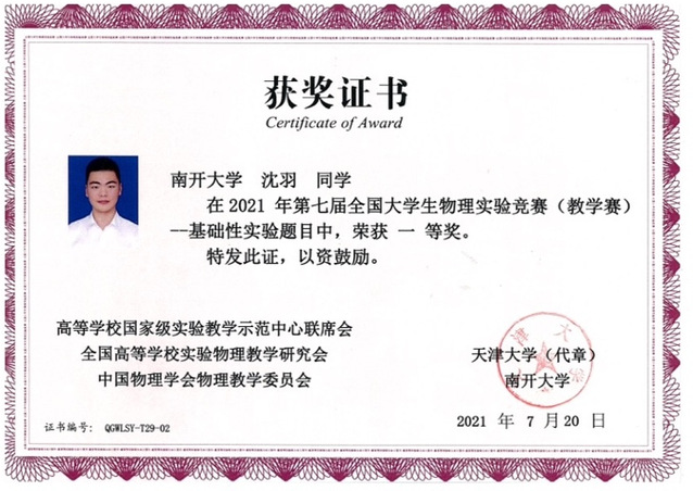“参加实验竞赛的过程是艰难的,同时也是有趣的。在这个过程中,我们的数值模拟能力,动手操作能力,创新能力,展示与表达能力以及团队写作能力都得到的有效的锻炼和提升,同时这次竞赛也激发起了我对物理实验的兴趣,我发现实验也是很有意思很有挑战的工作,将来我也愿意更多投入在实验方面的研究和学习,成为全面发展的物理人才。”(队长:聂彬彬)