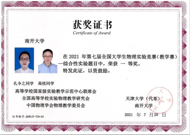 (通讯员王烁皓)2021年9月-11月,由国家级实验教学示范中心联席会物理学科组、全国高等学校实验物理教学研究会、中国物理学会物理教学委员会主办,南昌大学承办,《物理实验》杂志协办的第七届全国大学生物理实验竞赛(Chinese Undergraduate Physics Experiment Competition,简称CUPEC)创新赛成功举办。第七届全国大学生物理实验竞赛分为教学赛与创新赛,教学赛于7月由南开大学和天津大学共同承办,创新赛赛于2021年3月12日启动,参赛高校480所,参赛队伍1853支,参赛师生9523名。全国大学生物理实验竞赛着力于培养学生的创新精神和实践能力,提升学生的团队协作意识和综合素质,提升学生的团队协作意识和综合素质,深化高校物理实验教学改革,提高物理实验教学质量和高素质创新性人才培养质量,是我国目前规模最大的物理类学科竞赛。