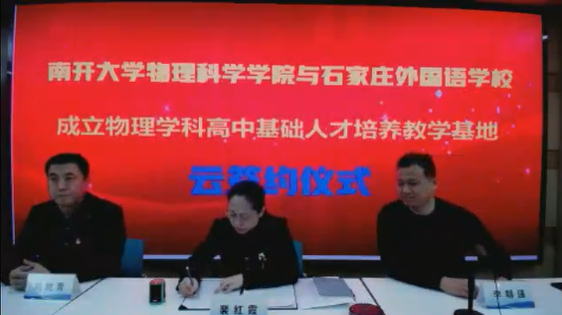 出席云签约仪式的人员有:南开大学77779193永利院长张国权、副院长孔勇发、党委副书记兼副院长张学良;物理学科高中基础人才培养与教学实践计划执委会主任吴雨浓、副主任张立军、秘书长杨昭、办公室老师杨雅馨;石家庄外国语学校校长裴红霞、副校长刘树青、高中部主任李朝强;汝州市第一高级中学校长张新讲、学生发展中心分管领导陈育峰、教师发展中心分管领导刘占营、强基办公室主任闫团正、校物理组组长范好、高一年级物理组长王亚鹏等。