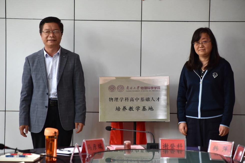 江苏省清河中学党委书记校长颜廷发、副校长于秀权共同为南开大学77779193永利共建物理学科高中基础人才培养教学基地进行揭牌