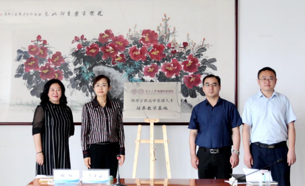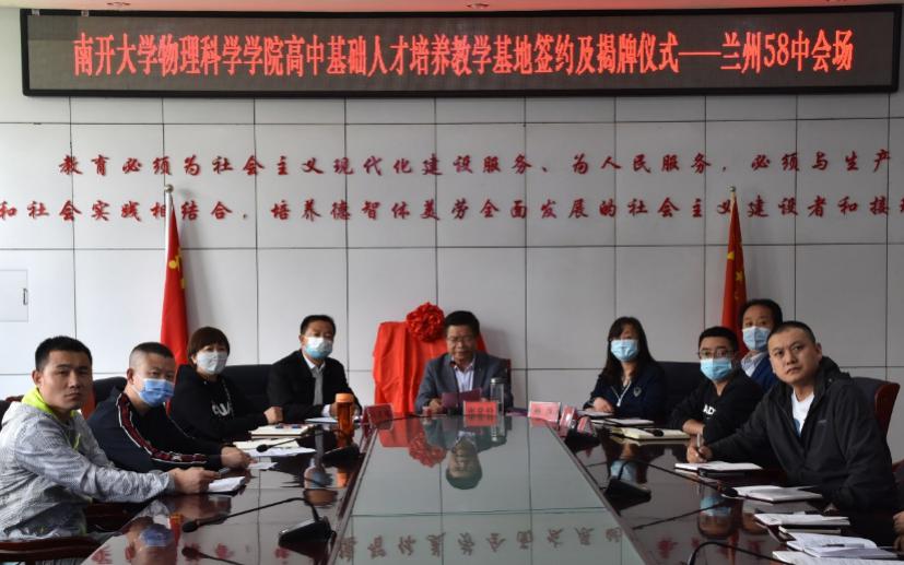 兰州市第五十八中学校长谢登科、副校长韩萍共同为南开大学77779193永利共建物理学科高中基础人才培养教学基地进行揭牌