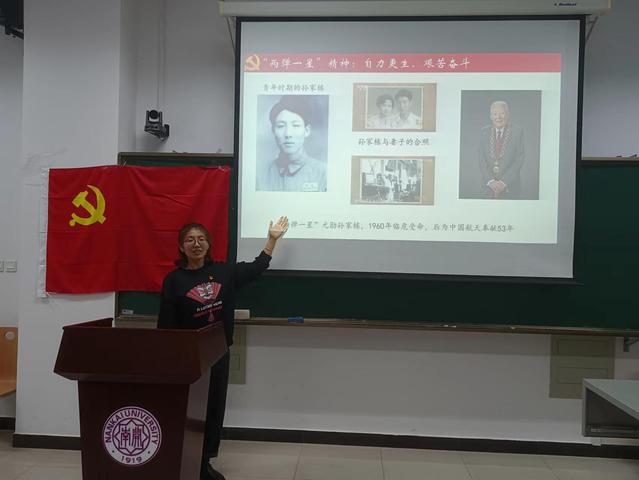 宣讲团从“两弹一星”精神的产生开始讲起,带领同学们回顾了在第一代党中央领导集体做出独立自主研制“两弹一星”的战略决策后,大批优秀的科技工作者响应党和国家的召唤,在艰苦的工作环境下自力更生,发奋图强,以身许国,突破了核弹、导弹和人造卫星等尖端技术。随后,宣讲团通过郭永怀、朱光亚、程开甲等“两弹一星”功勋获得者的故事,阐述了以“热爱祖国、无私奉献,自力更生、艰苦奋斗,大力协同、勇于登攀”为内涵的“两弹一星”精神内涵。最后,宣讲团讲述了2020年以来中国航空航天事业的发展,介绍了“两弹一星”精神的延续。