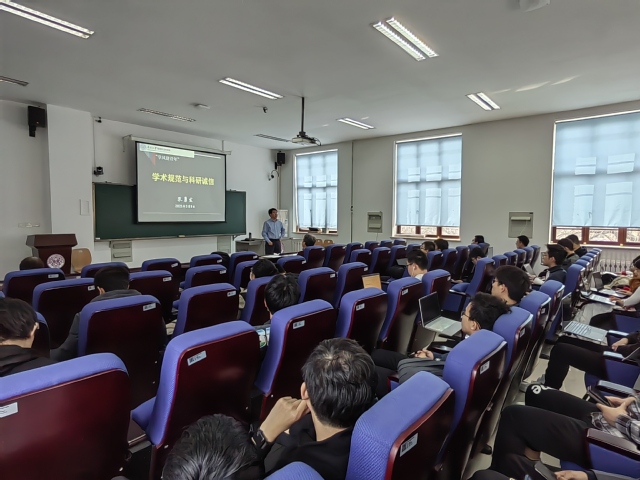 副院长孔勇发以《学术规范与科研诚信》为题,现场为同学们讲授了“开学第一课”,聚焦科研创新与学术诚信,为学生做科研系好第一颗扣子。