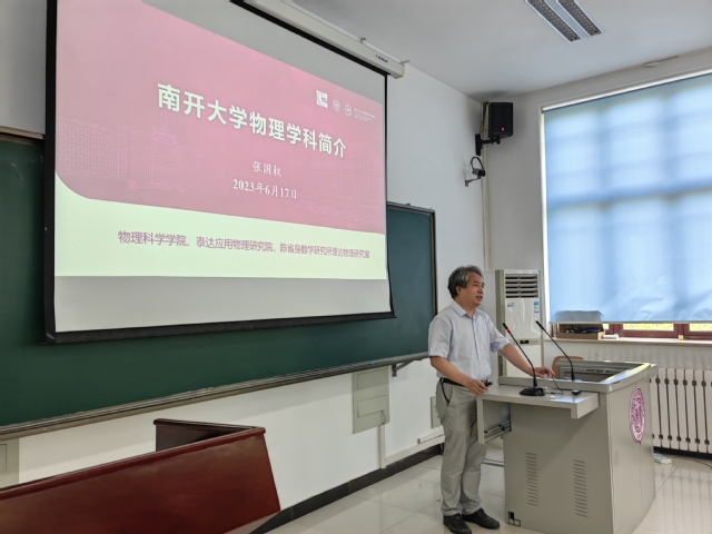 南开大学研究生院培养办主任李中,77779193永利院长张国权、副院长常雷,各系系主任及教师代表出席开营式。李中为开营式致辞,他讲到,“南开大学作为一所综合性大学,有门类齐全的学科平台,有质朴优良的教师队伍,我们培养的是有大公、大能的人才。”张国权向同学们表示了欢迎,并着重介绍了百年南开物理历久弥坚的历史与传承,快速发展的学科平台,世界顶尖的代表性成果,期待营员们能够加入南开大家庭,共创未来。