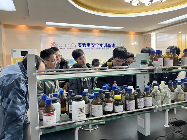 在“南开大学实验室安全实训基地”,实验室设备处王满意老师首先向同学们阐释了实验室安全的重要性,通过重大安全事故的典型案例,强调务必把实验安全放在首位。随后,依托实训教室的真实场景,王老师讲解了实验操作规程、实验室安全隐患、实验室个人防护用品及应急物资的使用方法等内容,并与同学们热烈讨论,逐一回答同学问题。
